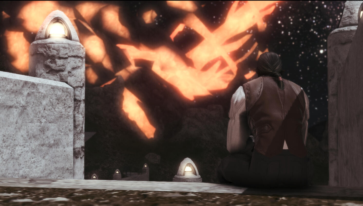 (Preface: in Audriq’s canon he is one of at least four known Warriors of Light; he does not experience every storyline/event in the game, and not always in the same order!)Before A Realm RebornIn Central La Noscea, Audriq woke up in the wake of the Calamity nauseous, heavy and disoriented. It was unclear if the Calamity had happened days before, or mere hours, and complicating the matter was that he had acquired terrible amnesia: he had no idea what his name was, what had happened, and the land and people looked strange and foreign. He had a heavy, awkward accent that received strange looks, but gave him enough communication skills to navigate the new world.Audriq struggled the first few months as he formed his identity (and 'temporary' name), and tried to puzzle through what had happened. Getting nowhere, he eventually became caught up in reconstruction jobs for Limsa Lominsa, and set aside his problems for the time being. He moved from odd job to odd job, eventually finding a steady line of work through a kitchen that helped deliver meals for workers and those needing aid. He started by helping move stock and inventory, but with the cooks short of hand, he became familiar with many kitchen skills, and was quickly stolen by staff as a permanent employee. The kitchen owner enjoyed Audriq’s work ethic and steady presence (ignoring his occasional tardiness), and the two became easy friends.A Realm RebornOne day, Audriq’s boss confesses to him a dilemma: an old friend in the culinary field is in dire need of employment. Audriq had been promoted to sous chef in the kitchen months earlier, but the boss could not keep both him and the friend. Audriq volunteers to step down, and decides to take the time to go back to other jobs that would allow him to explore the realm freely.The Adventurer’s Guild leads Audriq to assist caravans back and forth through La Noscea and The Shroud towards Gridania, delivering cargo from the ports. During a routine trip, bandits unexpectedly jump the wagons. Audriq instinctively grabs a lance and fights back alongside the guard, killing a bandit and causing the rest to retreat. The caravan, thrilled by his skill, asks about his fighting experience, to which he states he was unaware he had any. The group encourages him to join the lancer’s guild at their arrival in Gridania, starting Audriq’s journey proper, and is eventually pulled into working with the Scions at the Waking Sands.The most significant event for Audriq in ARR would be his time in Crystal Tower. Audriq becomes very close to a few individuals during the expedition, most significantly with G’raha Tia. Amused by his excitable and enthusiastic nature, Audriq would take small breaks to follow the miqo’te on excursions to sites of interest. During these, both would also sit and talk for hours in the evening, Audriq being pressed for stories. When G’raha seals himself away in the Tower, Audriq is heartbroken, realizing his growing influence in the world is farther from his control than he had imagined, and the consequences have become too painful.Seeking distance, he leaves Eorzea for Coerthas to take up an offer he had been given to train further as a Dragoon. When it is revealed that Audriq has been marked by Nidhogg’s eye as an Azure Dragoon, Audriq is thrown into another crisis. He cannot understand why the Echo has only now begun to dog him, and why, through no desire of his own, he has become so integral to the future of so many people. Still no memories have returned. The burdens now crush him, and he runs into the Coerthas Highlands, into hiding.HeavenswardAudriq would find little rest; eventually through sporadic contact with Haurchefant he hears the events of the Banquet that have taken the Sultana’s life and scattered the Scions across the realm. Haurchefant tells him that several of his friends had sought safety at Camp Dragonhead. Seeing Tataru and Alphinaud plight worries Audriq, and he decides to join them, despite his hesitation to continue to involve others in his struggles.Audriq around this time falls down the road of the Dark Knight. He finds his familiarity with the class and weapon unsettling, and is, somehow, uncomfortably at home in the role. He struggles to interact with Fray, realizing eventually what he is intrinsically tied to - the self he does not remember. It seems that this 'lost self' was angry, bitter and defeated by the time he met his 'end', and knowing this leaves Audriq uncertain that he will be able to help the realm at all, if he is someone who could eventually yield to such destructive anguish.Heavensward is a major storyline for Audriq, and he is involved in nearly all the MSQ. The events in the Vault stun and infuriate him; he is sure that the fatal blow by Ser Zephirin was meant for him, and throws his rage into an oath to eliminate the threats created by the Archbishop and Heaven’s Ward. Ysayle’s death would destroy him further, and yet it causes him to stop and reflect on his own desires. Finding her actions too eager to embrace a road of self-destruction, and seeing a glimpse of his own nature within them, he commits to a role of perseverance rather than sacrifice. Audriq confronts the Archbishop as a Dark Knight, one of only two major battles he does so. He has found himself at a truce with Fray for the time being, determined to live another day where he may yet find answers.Audriq also leads the fight in defeating Nidhogg, as the Azure Dragoon, finding strength in his desire to protect his comrades around him. He leaves Ishgard feeling a little stronger and steady, and while he does not find closure or answers to his continuing amnesia, there is at least hope that, maybe, this time, the man he’s become will not give in to despair.StormbloodThe battle with Zenos in Rhalgr’s Reach leaves Audriq gravely wounded, and he ends up recovering alongside Y’shtola for most of the story, having to trust on his comrades to come through on the